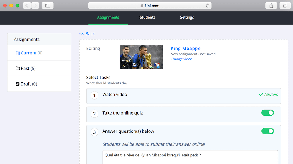 Use the Online Classroom to assign homework your students will enjoy. Ask them to watch a video, to take the quiz or to answer/discuss questions in writing. Set a deadline and review your students' work at one glance from your dashboard.